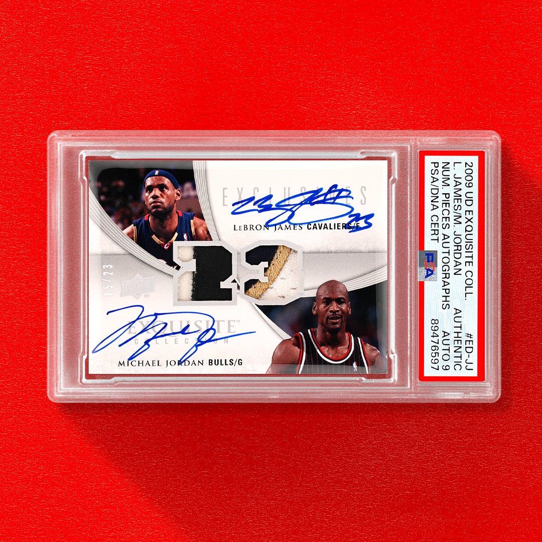 π πππ πππΌπΏππΏ π π The debate will rage on forever, but this card spectacularly captures two GOATs. The iconic No. 23 is celebrated here with a pair of multi-color, game-used patches, coupled with bold on-card autos. OkK9U2Ga5q