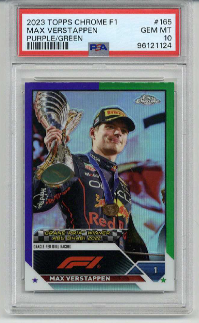 2023 TOPPS CHROME F1 PURPLE GREEN REFRACTOR #165 MAX VERSTAPPEN PSA 10 LOW POP