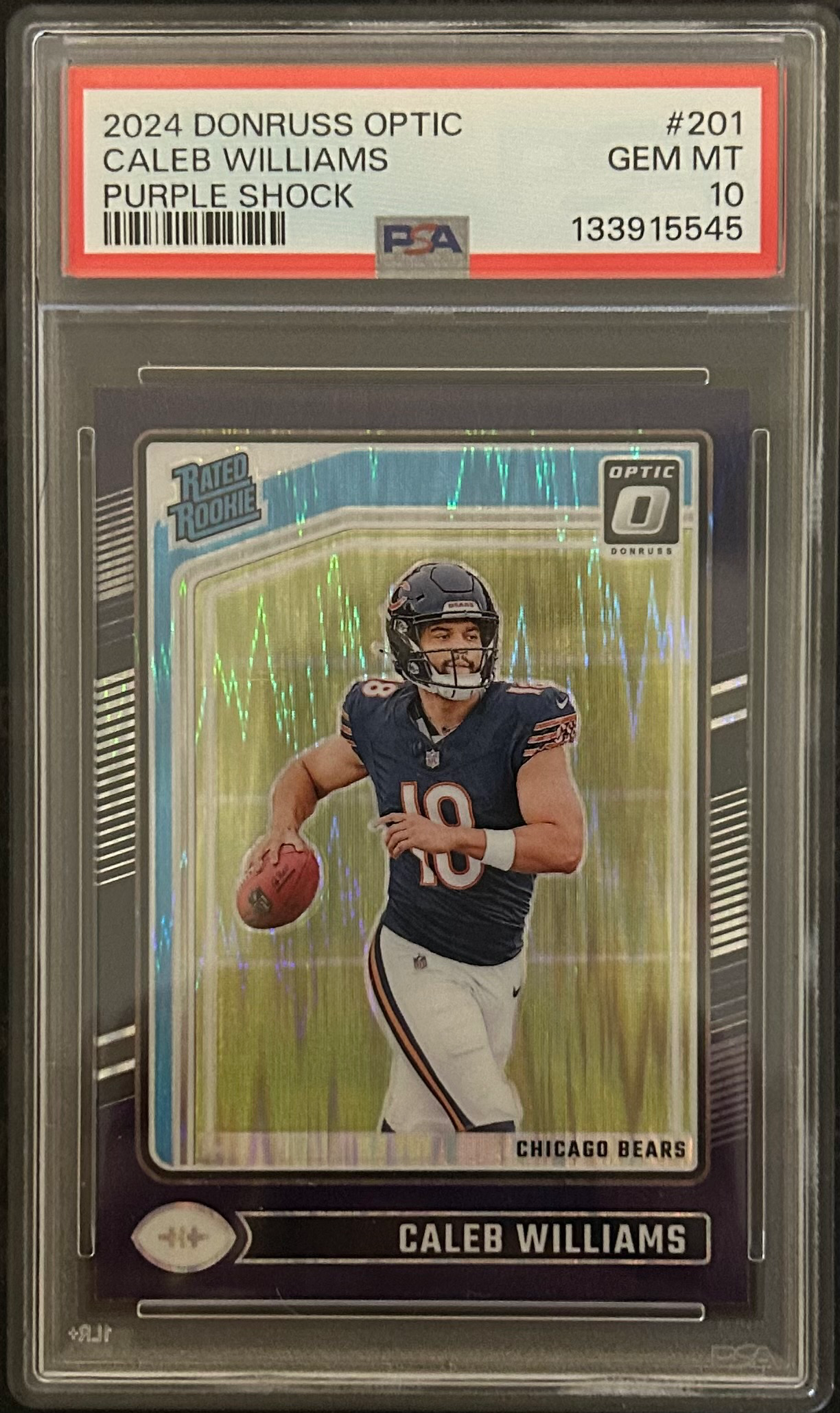 2024 Donruss Optic Caleb Williams Purple Shock PSA 10 Card No. 201